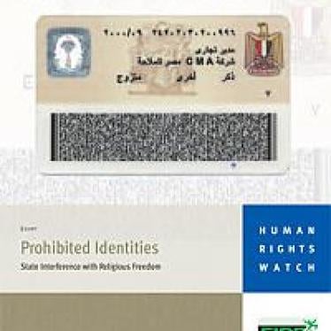 وكان تقرير مشترك أصدرته هيومن رايتس ووتش والمبادرة المصرية للحقوق الشخصية عام 2007 قد قام بتوثيق سياسة وزارة الداخلية القائمة على الامتناع عن إصدار الوثائق الثبوتية الإلزامية ـ التي يشترط فيها إثبات الديانة ـ للمصريين البهائيين أو المواطنين الذين يتحولون من الإسلام إلى المسيحية. كما قام التقرير ـ الذي حمل عنوان (هويات ممنوعة: انتهاك الدولة لحرية المتقد) ـ بإظهار أن هذه السياسة لا تستند إلا إلى تفسير الحكومة الانتقائي والضيق للشريعة الإسلامية، وأنها \ تخالف التزام الدولة بموجب الدستور المصري واتفاقيات حقوق الإنسان الدولية التي صدقت عليها بحماية الحق في حرية الدين والمعتقد، والخصوصية، ومنع التمييز.