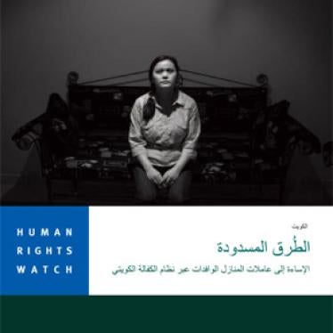(مدينة الكويت) - قالت هيومن رايتس ووتش في تقرير أصدرته اليوم إن عاملات المنازل في الكويت اللاتي يحاولن الفرار من أصحاب العمل المسيئين يتعرضن لتهمة "الفرار" الجنائية ولا يمكنهن تغيير وظائفهن دون موافقة أصحاب العمل. تتمتع عاملات المنازل الوافدات بالقليل للغاية من الحماية من بعض أصحاب العمل الذين يمنعون عنهن الرواتب، ويجبرون العاملات على العمل لساعات طويلة يومياً دون منحهن يوم عطلة أسبوعية، ويحرمونهن من الطعام الكافي، أو يسيئون إليهن بدنياً أو جنسياً.