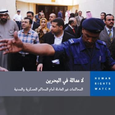 (بيروت) – قالت هيومن رايتس ووتش في تقرير أصدرته اليوم إن الحكومة البحرينية لجأت بشكل منهجي إلى إدانة المئات من نشطاء المعارضة وآخرين على خلفية اتهامات سياسية الدوافع، في محاكمات غير عادلة. وقالت هيومن رايتس ووتش إن على الحكومة أن تُلغي أحكام الإدانة في محاكمات المحاكم العسكرية والمدنية البحرينية التي لم تستوف المعايير الدولية للمحاكمة العادلة.