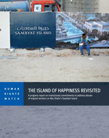 يناقش هذا التقرير ثغرات في توفير تدابير الحماية للعمال في جزيرة السعديات، من بينها استمرار عدم تعويض العمال على ما يدفعونه من رسوم استقدام للعمل، وتسديد هذه الرسوم يستغرق منهم شهوراً وسنوات في العادة، وهو ما يعتبر أكبر عامل يهيئ أوضاع العمل الجبري.