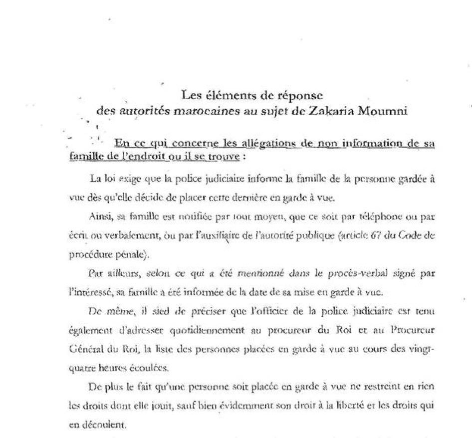[96] بيانات مختلفة غير مؤرخة قدمتها سفارة المغرب في واشنطن، نسخ منها موجودة في ملف لدى هيومن رايتس ووتش.