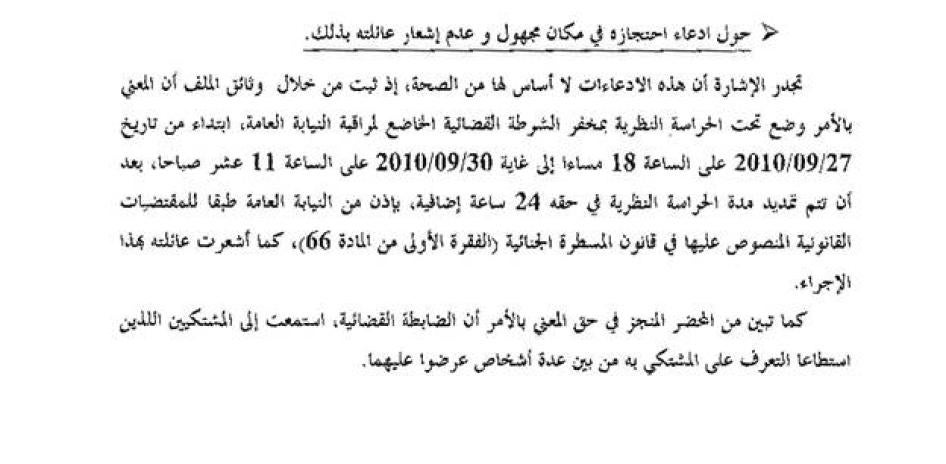[111] المحكمة العسكرية في الرباط، غرفة الأولى، قضية عدد 2837/2546/09 ، 21 سبتمبر / أيلول 2010.