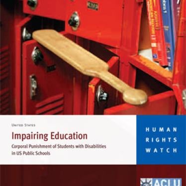 (New York) - Schüler mit Behinderung werden unverhältnismäßig häufig Opfer von Körperstrafen in öffentlichen Schulen, so ein von der American Civil Liberties Union (ACLU) und Human Rights Watch heute veröffentlichter Bericht. Köperstrafen, meist mit Schlägen verbunden, können den Gesundheitszustand dieser Schüler verschlechtern und ihre schulische Entwicklung behindern. In dem Bericht wird ein sofortiges Ende der Körperstrafen in öffentlichen Schulen der USA gefordert.
