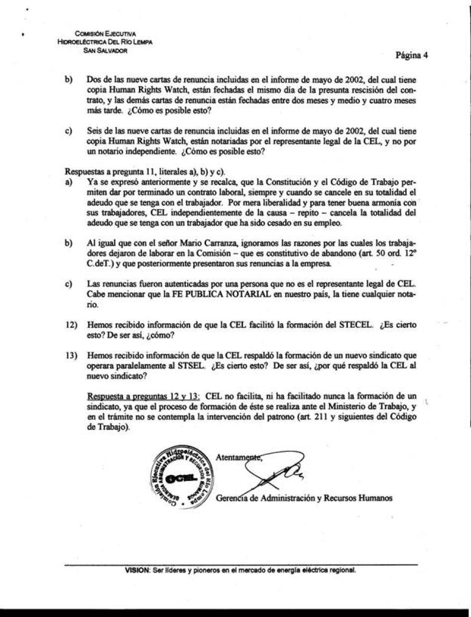 [480] Entrevista realizada por Human Rights Watch, Ernesto Gómez, abogado laboral, San Salvador, 3 de febrero de 2003.