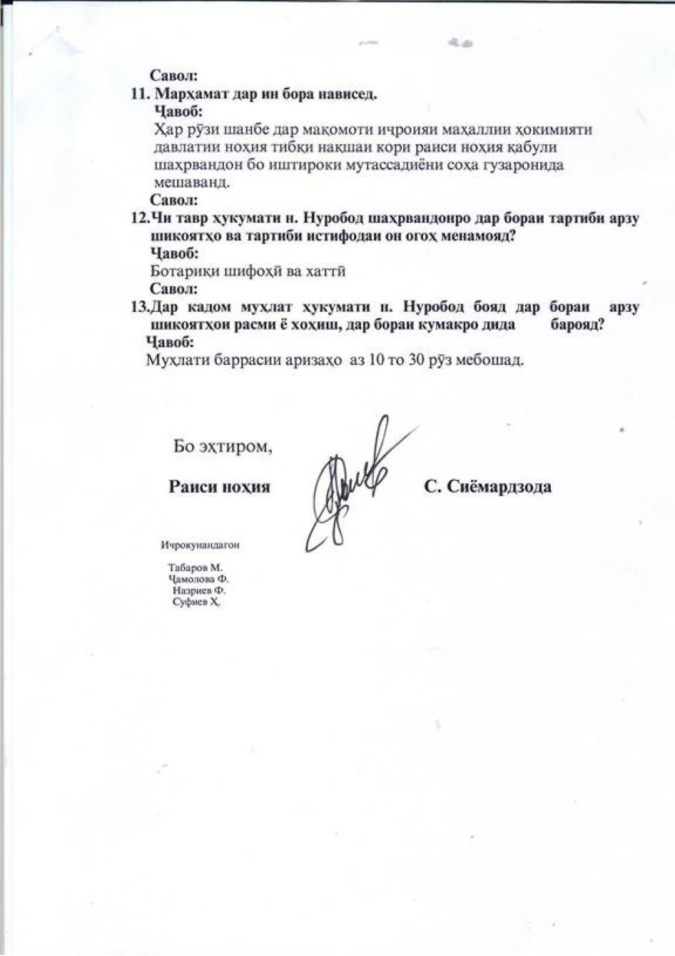 [235] Мусоҳибаи Созмони Дидбони ҳуқуқи башар бо Мирзоев Наҷмиддин, раиси ҷамоати Сичароғ, 30 январи соли 2014.