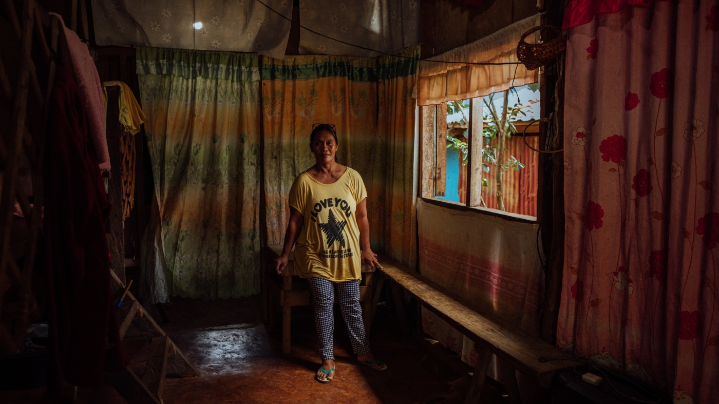Zenaida Tomines is a 52-year-old woman who has lived with her husband and 4 children in San Isidro, a municipality of Siargao island, for nearly two decades. She is a polio survivor who finds even short walks painful. She supports her family by catching crabs in the river by her home and selling them in the local market.