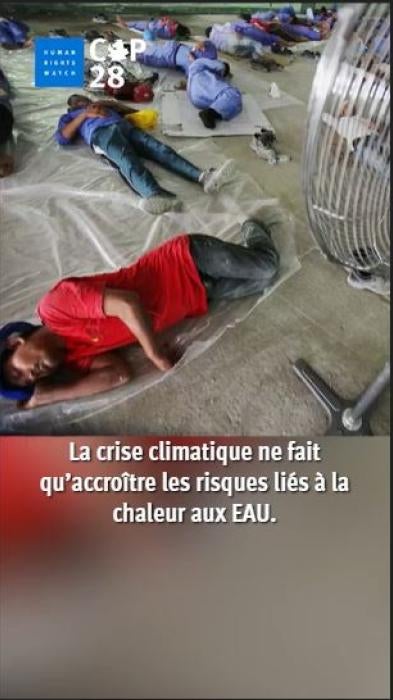« Les travailleurs migrants aux Émirats arabes unis et leurs communautés dans leurs pays d'origine, qui contribuent à peine à la crise climatique, sont particulièrement exposés aux risques liés au changement climatique », a déclaré Michael Page, directeur adjoint de la division Moyen-Orient et Afrique du Nord à Human Rights Watch. « Non seulement les Émirats arabes unis aggravent la crise climatique en tant que producteur majeur de combustibles fossiles, mais les abus infligés aux travailleurs et les protections thermiques inadéquates exacerbent l’injustice liée aux phénomènes climatiques. »