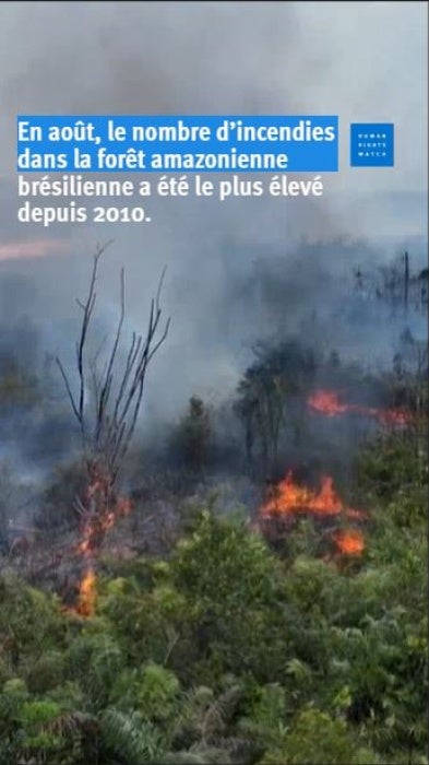 De nombreux incendies ravagent actuellement la forêt amazonienne au Brésil. Le gouvernement devrait agir plus fermement pour protéger les populations autochtones affectées, et pour freiner le changement climatique qui aggrave ces feux de forêt.