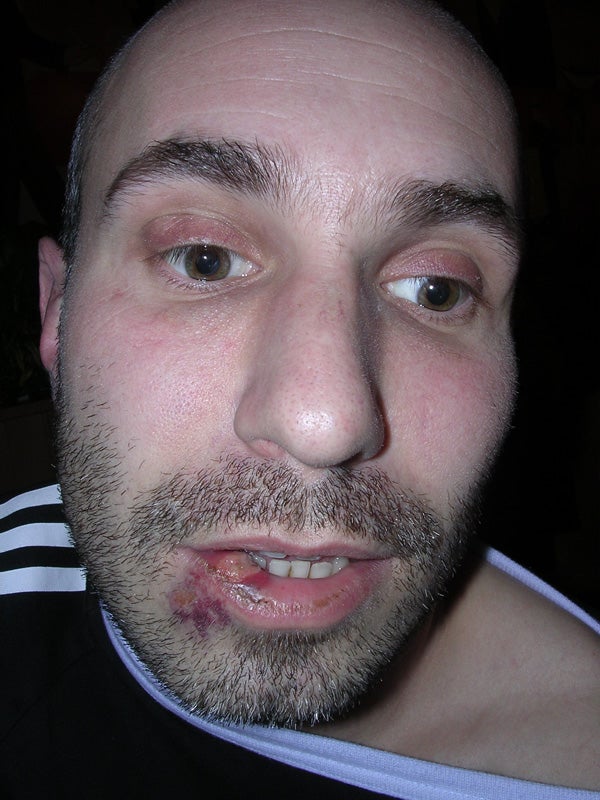 Pierre Serne shows facial injuries. © 2006 Human Rights Watch.