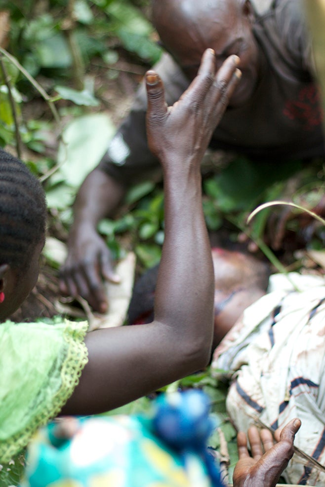The body of Jean Pierre Paluku Muvungu, 38, who was killed by unidentified rebels with machetes on October 2, 2014, in Mukoko village in North Kivu province, Democratic Republic of Congo.