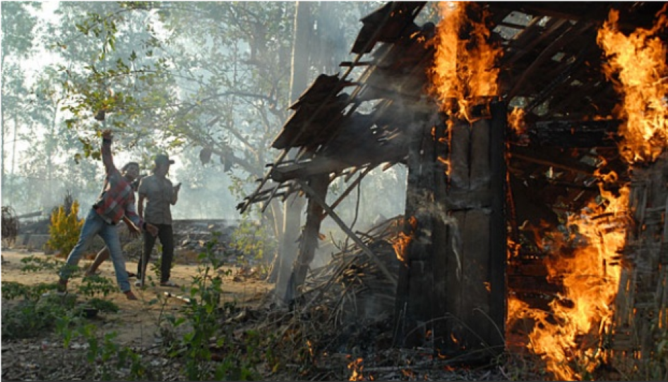 Militants burn down Shia houses on August 26, 2012, in the village of Nangkernang in Sampang regency, Madura Island. Hundreds of Sunni militants associated with the Ulema Consensus Forum torched around 50 Shia homes that day, killing one man and seriously injuring another, as several police officers looked on. © 2012 Saiful Bahri/Antara