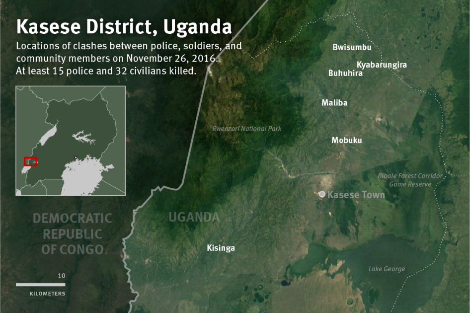 Human Rights Watch interviewed more than 95 people in six subcounties of the Kasese district, including many families of the people killed, and reviewed video and photographs of the events. Many people voiced significant fears of reprisals given the presence of security forces in the area.