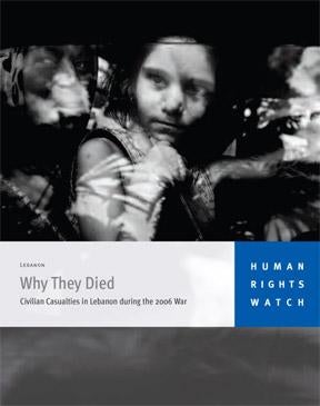 In this 249-page report Human Rights Watch examines military operations by Israeli and Hezbollah forces in Lebanon during the armed conflict that lasted from July 12 until August 14, 2006. In five months of research, Human Rights Watch investigated 94 cases of air, artillery and ground attacks by the Israel Defense Forces (IDF) to discern the circumstances surrounding the deaths of 510 civilians and 51 combatants, nearly half the at least 1,125 Lebanese deaths during the conflict. Of the approximately 510 Lebanese civilian deaths investigated by Human Rights Watch, at least 300 were women or children.