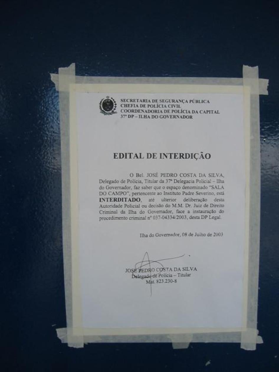 [220] See Letter from Bochenek to Gov. Garotinho, August 11, 2003.