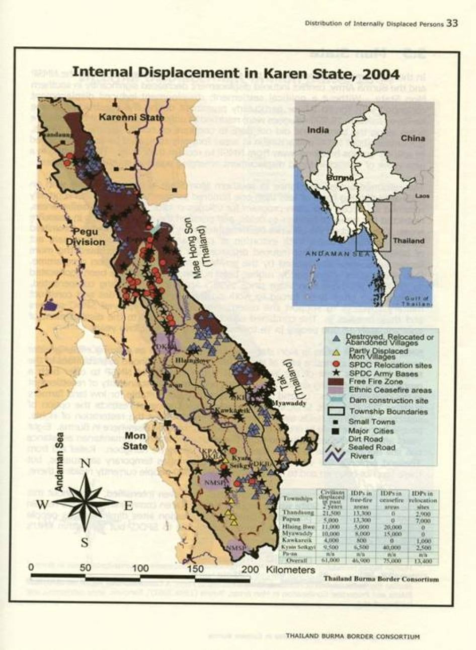 Map 1: Internal Displacement in Karen State, 2004