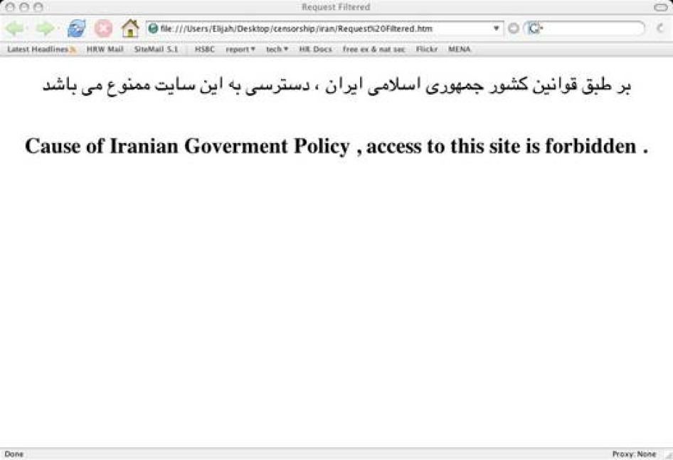 [385] See, for example, Open Net Initiative, Country Study: Internet Filtering in Iran, 2004-2005, June 21, 2005.