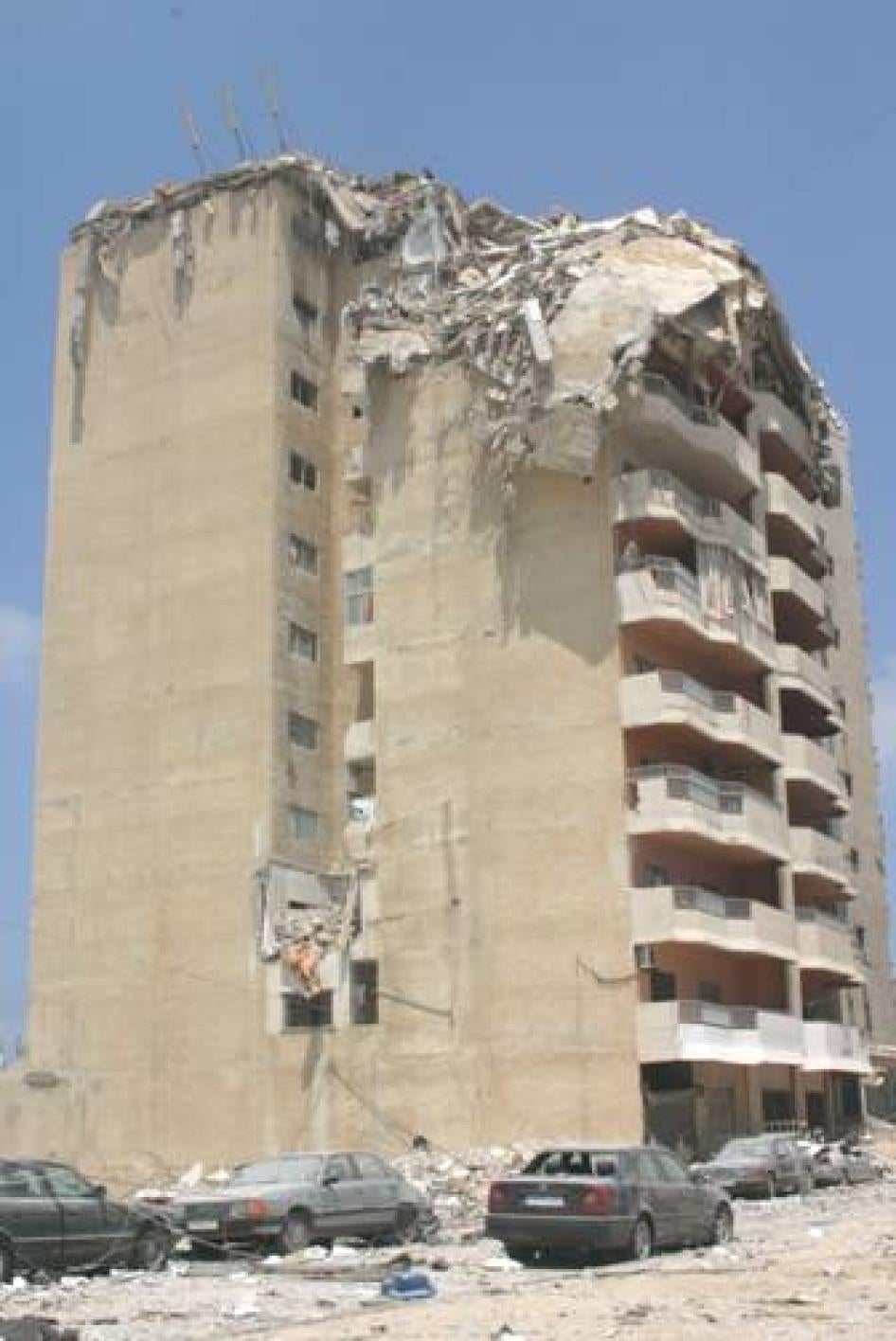 Israeli warplanes launched some 7,000 bomb and missile strikes in Lebanon, which were supplemented by numerous artillery attacks and naval bombardment.[1] Israeli airstrikes destroyed or damaged tens of thousands of homes. In some villages, homes completely destroyed by Israeli forces numbered in the hundreds: 340 homes completely destroyed in Srifa; 215 homes completely destroyed in Siddiquine; 180 homes completely destroyed in Yatar; 160 homes completely destroyed in Zebqine; more than 750 homes completely destroyed in `Aita al-Sha`ab; more than 800 homes completely destroyed in Bint Jbeil; and 140 homes completely destroyed in Taibe. The list throughout southern Lebanon is extensive.