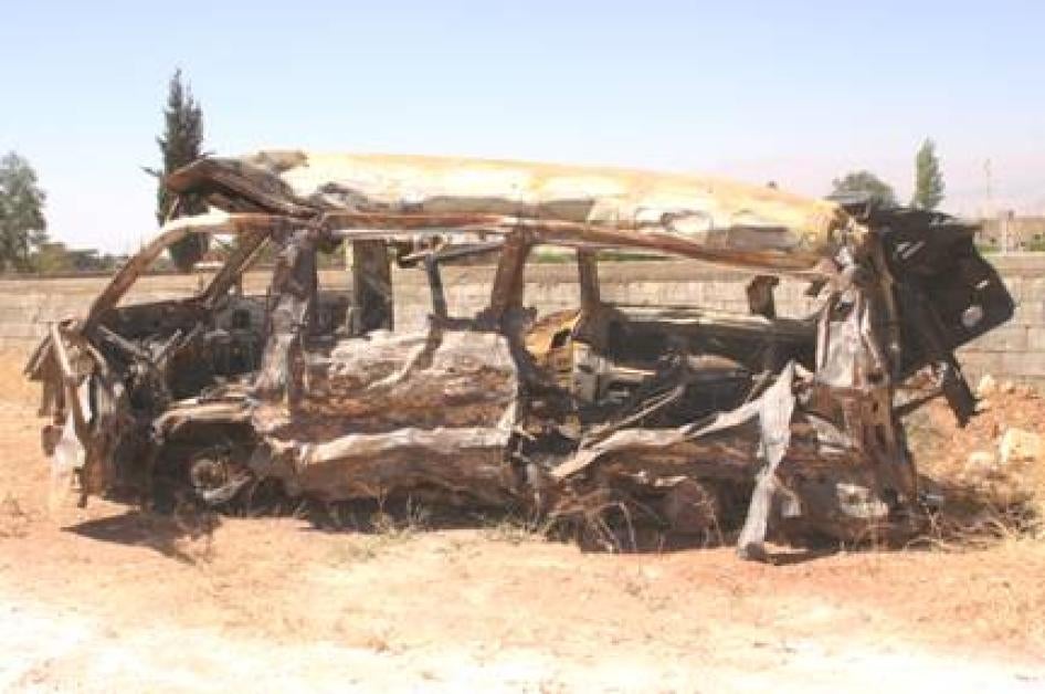 [464] Human Rights Watch interview with Doctor Hashim Zain, Tyre, August 1, 2006. See also Anthony Shadid, "Terror Rains Down From Sky on Fleeing Lebanese: Several Refugees Killed by Missile-firing Israeli Helicopters," Washington Post, July 24, 2006; Megan K. Stack, "'Unbelievable' Losses, Terror as Civilians Flee Missiles," Los Angeles Times, July 24, 2006; Tim Butcher, "Any Moving Car Becomes A Target, as Israelis Turn the Screw, Tactics Become Tougher," Daily Telegraph (London), July 24, 2006; Thanassis Cambanis, "For Fleeing Lebanese Families, Road Exacts Heavy Toll," Boston Globe, July 24, 2006.