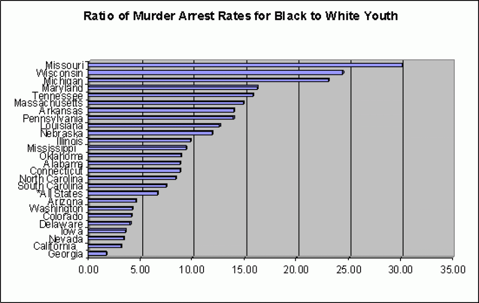 With regard to the sentencing of youth to life without parole, the data provided by the FBI showed that, once arrested for murder, black youth and white youth face strikingly different chances of receiving a sentence of life without the possibility of parole.