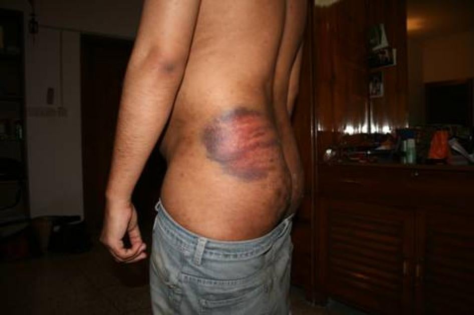 Tasneem Khalil was photographed 48 hours after his release from DGFI custody with bruises on his body resulting from torture. © 2007 Human Rights Watch