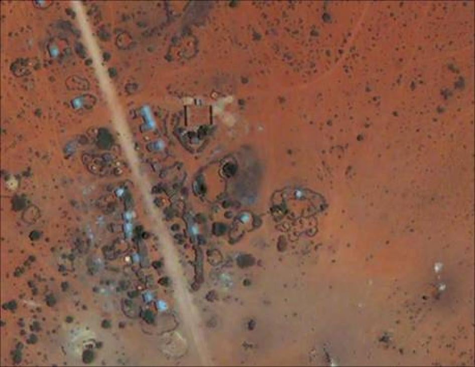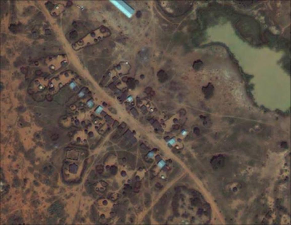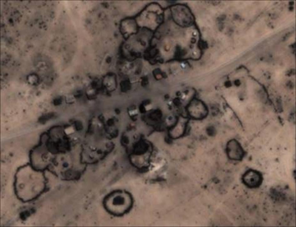 For villages mentioned in this report as burned, a total of 11 sets of "before" and "after" images were selected. These images were reviewed for signs consistent with the reporting provided by Human Rights Watch, and in eight cases the imagery did provide indications of structural removal and, sometimes, burning. Special care was taken to differentiate nomadic settlements from permanent towns, and to identify changes in those towns associated with traditional nomadic migration rather than violent attacks. Ultimately, image analysis focused on the permanent towns only, given the difficulties of assessing nomadic populations from satellite imagery. Resulting images are highlighted in this report, and more details are available in a corresponding report released by AAAS.