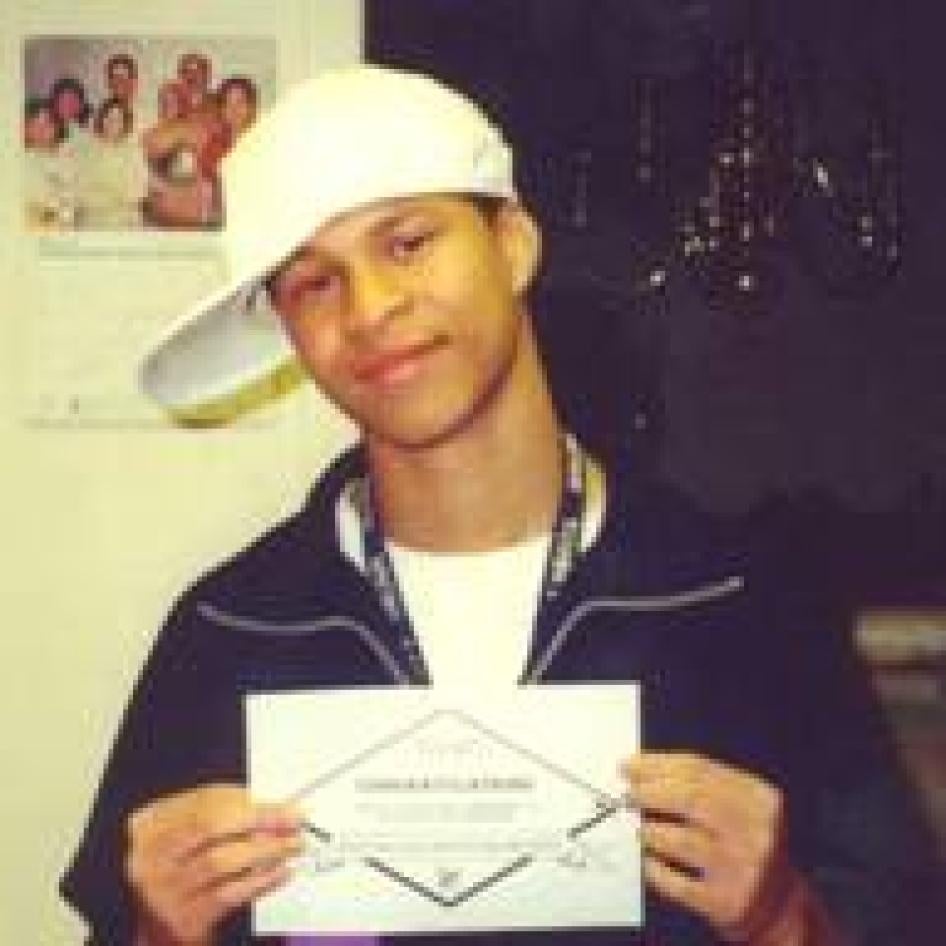 Kalel S holds a certificate in a family picture. He was 16 in this photo and at the time of his crime. © 2008 Private