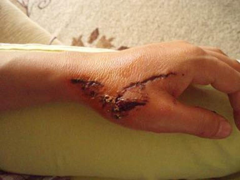 Among the migrants and asylum seekers Human Rights Watch interviewed, Ali Rahimi, an Afghan asylum seeker, was stabbed five times in the torso outside an apartment building in Aghios Panteleimonas in September 2011; Mehdi Naderi, an undocumented Afghan migrant, has a prominent scar on his nose from a December 2011 attack in which he was beaten by a mob with sticks and an iron bar near Attica Square; and Afghan refugee Maria N.’s left hand was ripped open in August 2011 when two men on a motorcycle hit her with a wooden club with iron spikes as they drove by.