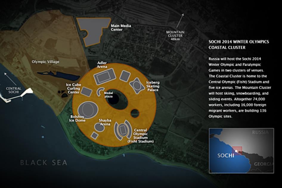 When Russia hosts the Winter Olympic and Paralympic Games in February 2014 in the Black Sea coast city of Sochi, Olympic athletes, coaches, spectators, journalists, and other visitors will enjoy state-of-the-art sports venues, lavish hotels, newly constructed roads, telecommunications systems, transportation hubs, and other major infrastructure necessary to support several weeks of top-level Olympic sports. This rapid transformation of Sochi, formerly a small resort town and a favored vacation destination for Soviet and contemporary Russian leaders, has been made possible by a fast-paced construction schedule and an influx of tens of thousands of migrant construction workers from within Russia and from abroad. As this report documents, dozens of these workers suffered abuse and exploitation while employed on key Olympic venues.