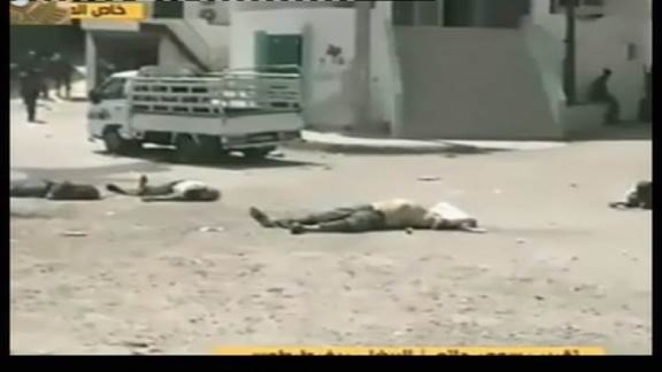 The residents of al-Bayda were unable to move the bodies of the men that first night. The next day, on May 3, reporters of the government-aligned al-Akhbariya TV station entered al-Bayda and filmed the bodies of the Bayasi family. When the TV station aired the film the same day it referred to the victims as “terrorists.”