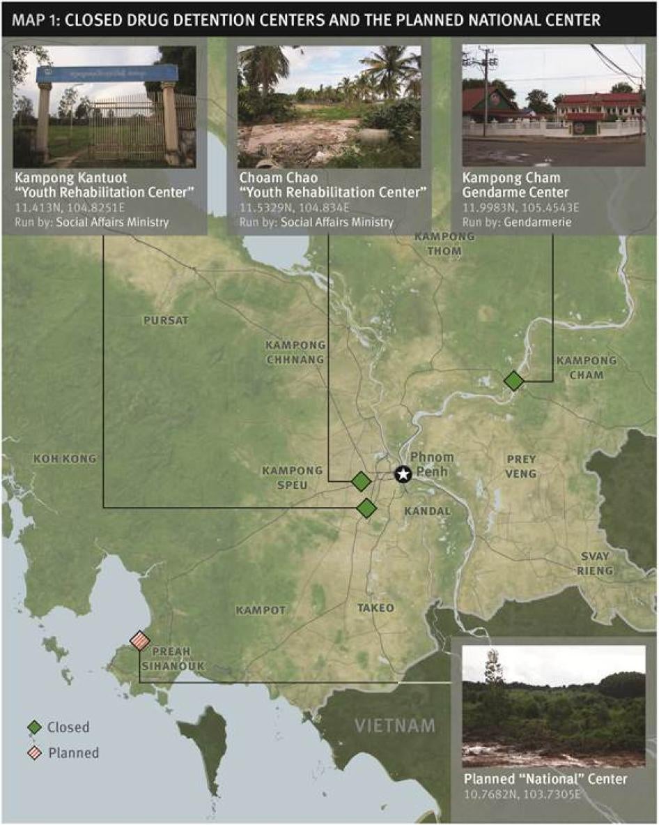 [41] Meas Vyrith, then-NACD deputy secretary-general, quoted in Zsombor Peter and Phorn Bopha, “From Mainlining to Methadone in Cambodia,” Cambodia Daily, November 30, 2012, http://www.cambodiadaily.com/special-reports/cambodias-methadone-dilemma-4927/ (accessed August 29, 2013); “Drug Detention Centers Offer Torture, Not Treatment,” Human Rights Watch news release, July 24, 2012, http://www.hrw.org/news/2012/07/24/drug-detention-centers-offer-torture-not-treatment .