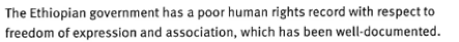 [263] The government has used various additional means to make it difficult for VOA and other international organizations to operate in Ethiopia including the regular detention of journalists and denial of work permits.