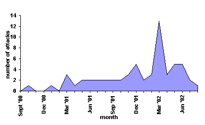 Timeline: Victims Killed by Suicide Bombers from September 30, 2000 - August 31, 20021