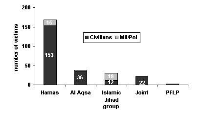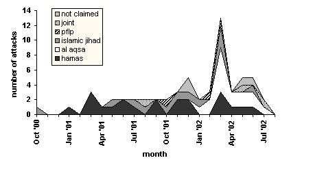 All charts relate to suicide attacks on Israeli civilians carried out from September 30, 2000 to August 31, 2002.