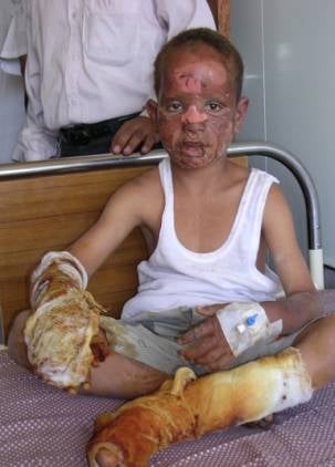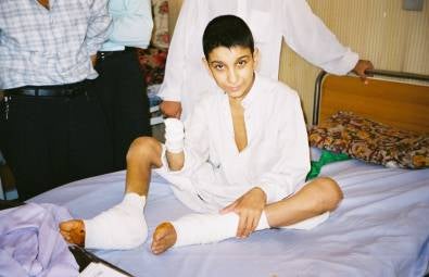 Eight-year-old `Ali `Abdul-Amir suffered severe burns and shrapnel injuries when he put a match to a piece of explosive ordnance outside his school in al-Nasiriyya. © 2003 Reuben E. Brigety, II / Human Rights Watch