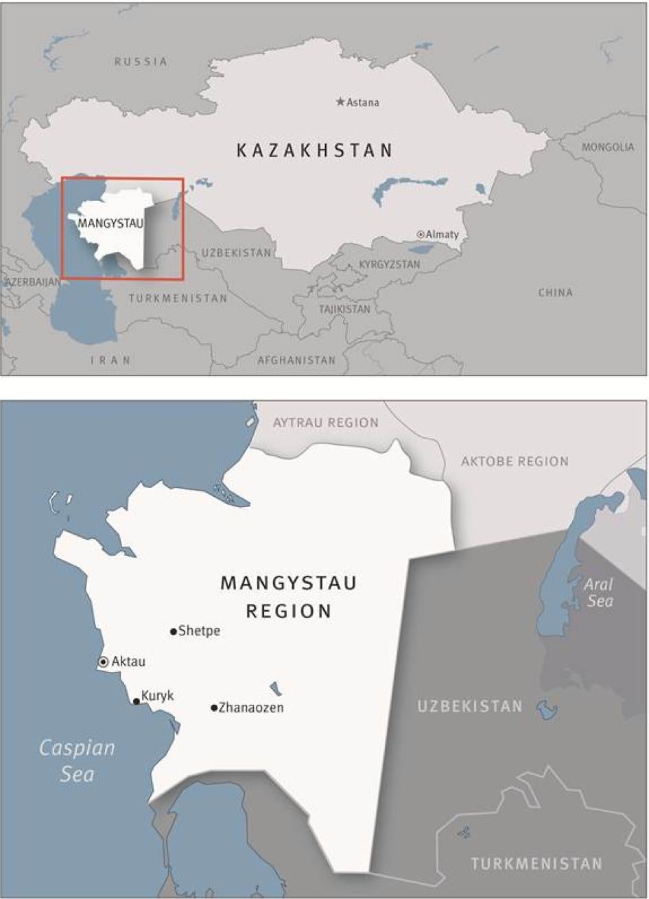 Карта Казахстана и Мангистауской области. © 2012 Хьюман Райтс Вотч