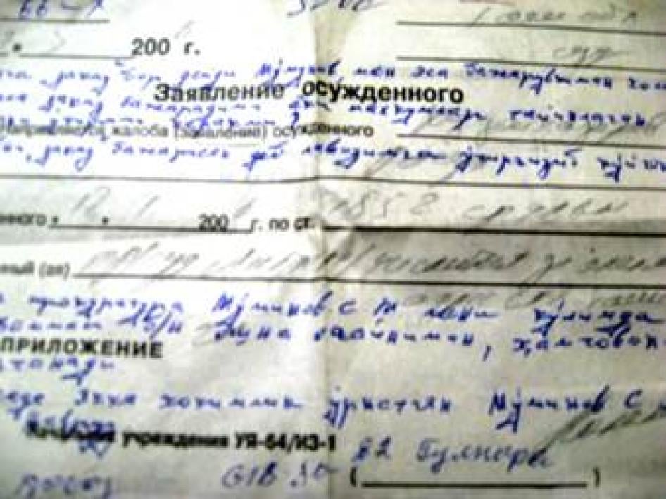 Собранная Хьюман Райтс Вотч информация свидетельствует о том, что во многих случаях условия, в которых содержатся лица, лишенные свободы по политически мотивированным обвинениям, - переполненные камеры, низкое качество и недостаточный объем пищи и воды, неудовлетворительная медицинская помощь – не отвечают международным тюремным стандартам. Обыденной практикой является отказ таким заключенным в лечении серьезных заболеваний, многие из которых возникли в ходе долгосрочного пребывания в местах лишения свободы. Власти в нарушение основополагающих международных обязательств Узбекистана в области прав человека не осуществляют мониторинг и не принимают мер по улучшению тех неудовлетворительных условий содержания, которые могли привести к появлению и последующему усугублению серьезных проблем со здоровьем. Необеспечение задержанному в тюрьме надлежащей охраны здоровья или лечения может быть одним из факторов, приводящих к возникновению условий, достигающих уровня бесчеловечного или унижающего достоинство обращения.